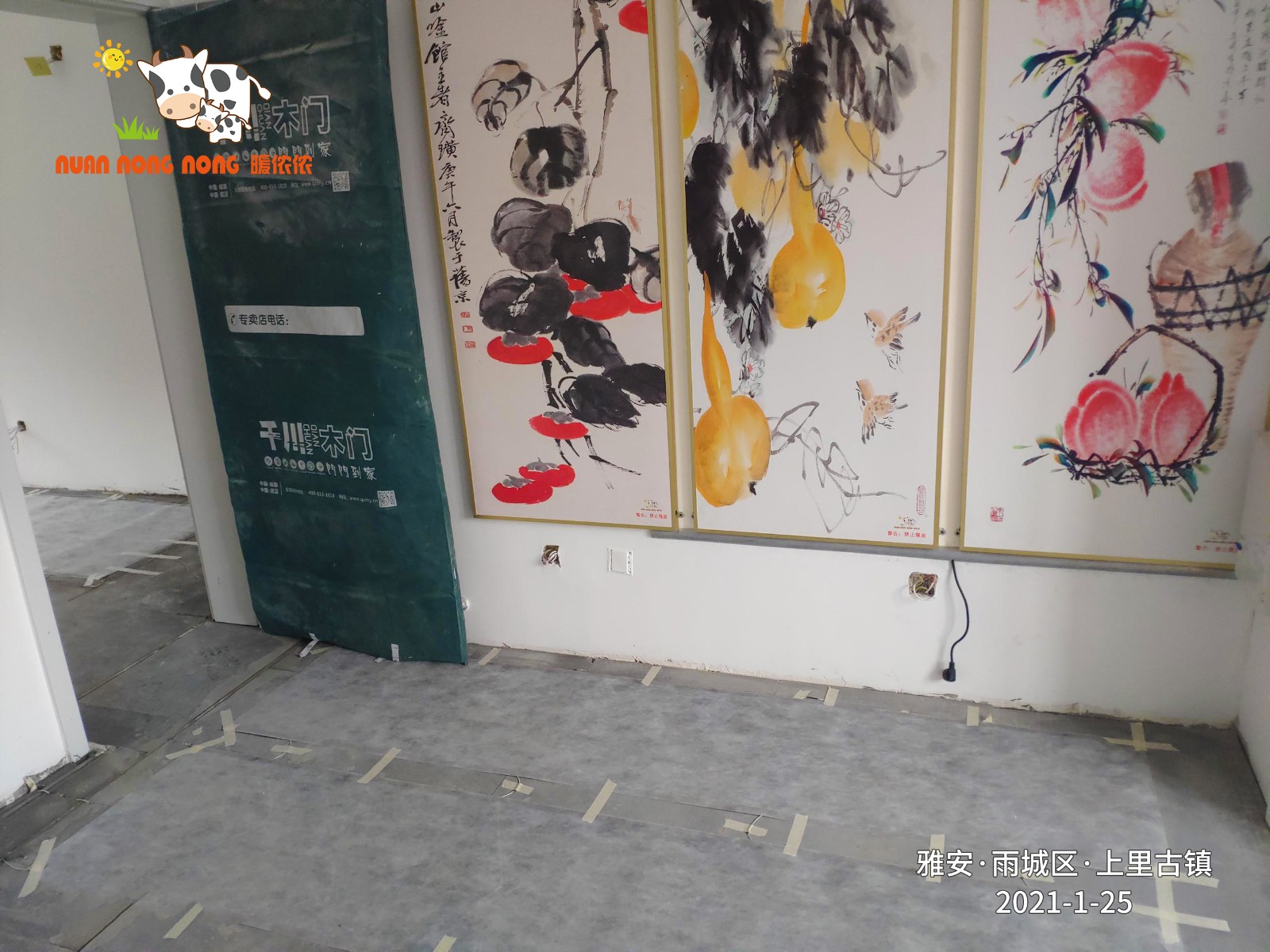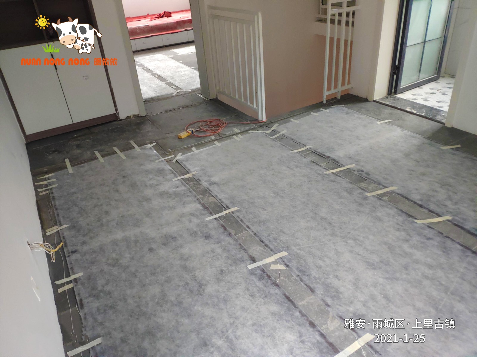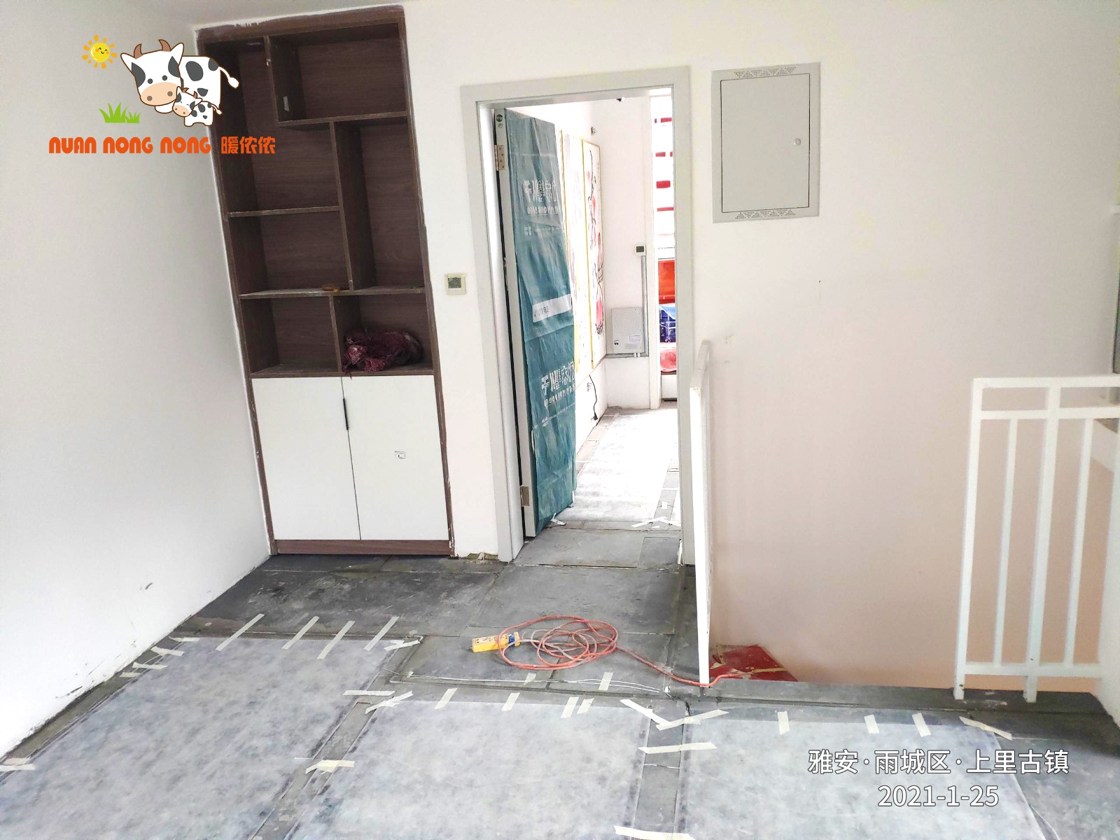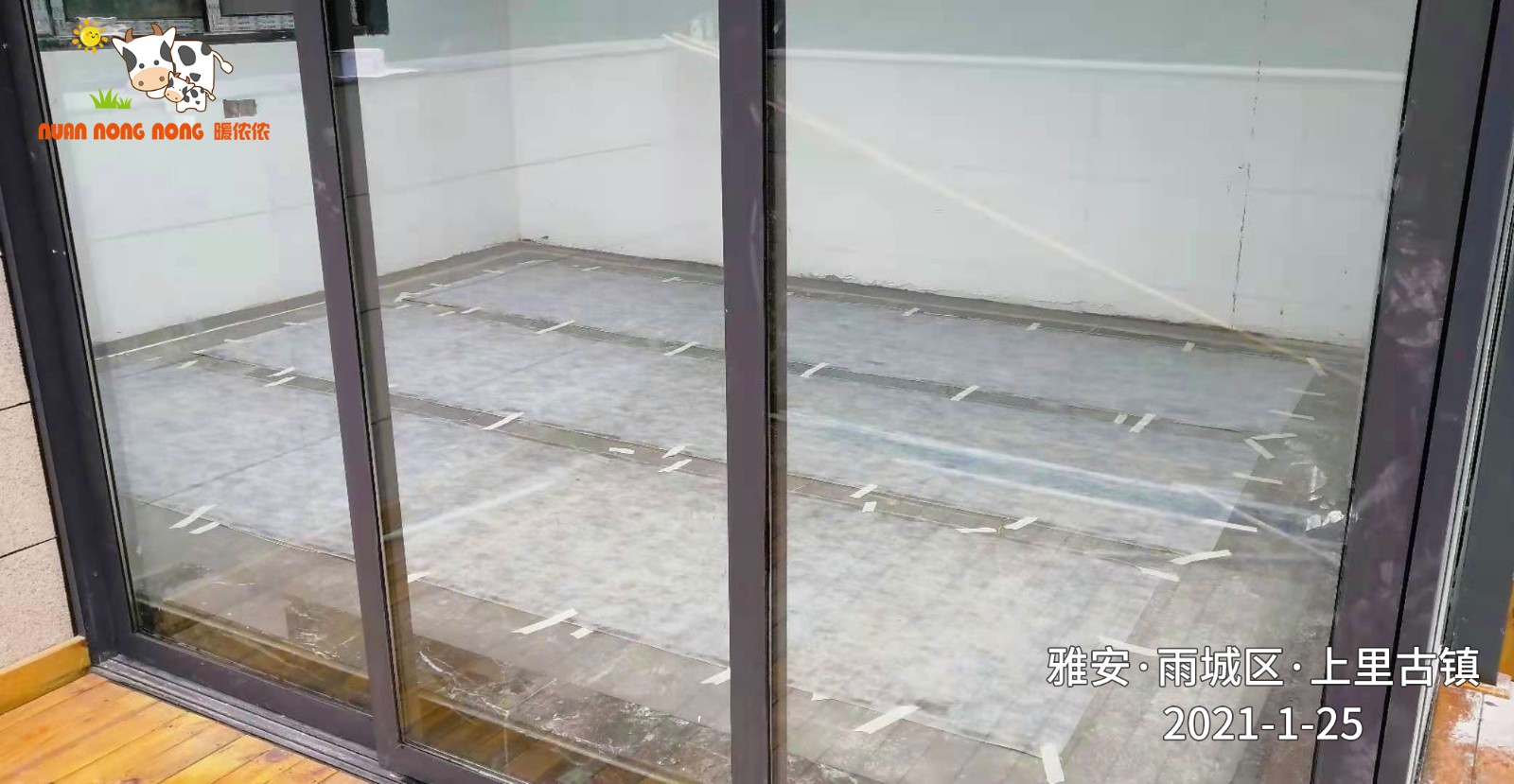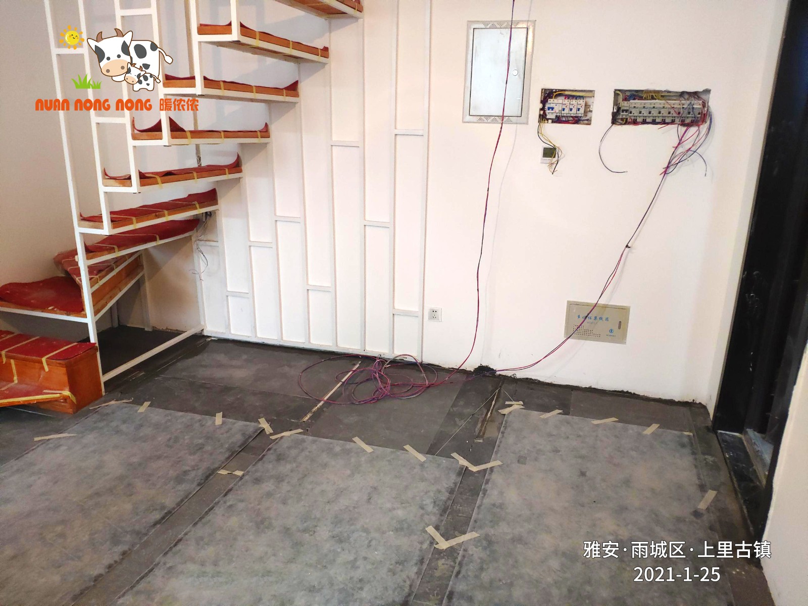 雅安上里古鎮花園洋房“水墨上里”四個房間采暖面積共計70㎡,安裝暖儂儂36V電采暖,從鋪聚氨酯板開始到最后通電測試交付客戶,一天完成!